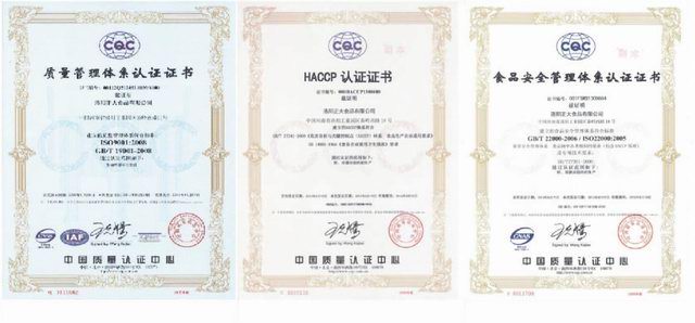 2013年8月19日,公司正式獲得食品安全管理、HACCP管理體系兩個管理體系的認(rèn)證證書。公司自2012年11月18日開業(yè)以來,在全體干部員工齊心協(xié)力基礎(chǔ)上,已成功通過了質(zhì)量管理體系、食品安全管理體系、HACCP管理體系三個管理體系認(rèn)證,為產(chǎn)品在全國各地市場準(zhǔn)入、出口備案及管理水平提升奠定了基礎(chǔ)。