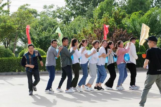 比賽開始之前、各團(tuán)隊隊長帶領(lǐng)隊員齊喊口號、振奮士氣!隨著一聲哨響、各項游戲比拼正式開始。有齊心協(xié)力的團(tuán)結(jié)一致、有跳大繩的有條不紊、有新式保齡球的輕松愉悅、有蜈蚣競走的歡樂開懷、有運(yùn)水接力的堅持不懈;游戲一項接著一項,笑聲不斷、趣味十足!
