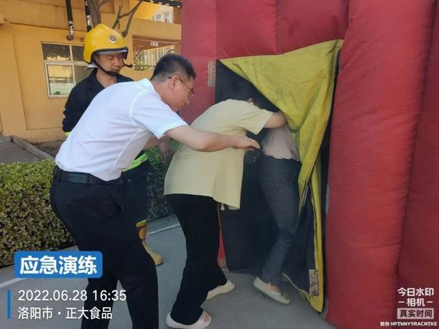 車間、外圍員工逐個(gè)體驗(yàn)應(yīng)急逃生帳篷項(xiàng)目