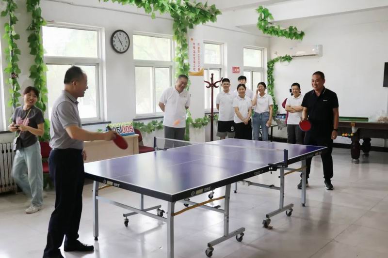 黨建活動結(jié)束后,雙方在職工活動中心舉行了迎“七一”乒乓球友誼賽,共同慶?!捌咭弧苯h節(jié)的到來。