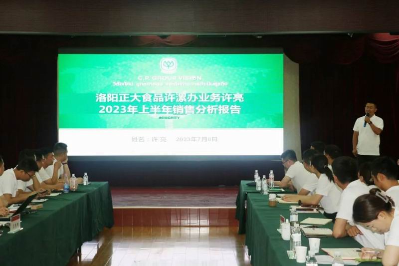 2023年7月8日,洛陽正大上半年工作總結(jié)會(huì)議在五樓會(huì)議室隆重召開,正大集團(tuán)河南區(qū)豬肉食品事業(yè)副總裁、洛陽正大食品有限公司總經(jīng)理沈道華、生產(chǎn)與行政外圍主管及全體銷售人員參加會(huì)議。